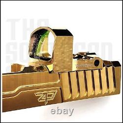 Weight (net): 19.1g / 0.67oz. Parallax-free and Unlimited eye relief. Brightness Level: 8 Levels & 2 NV with auto adjust sensor. Footprint: RMSc / RMS / SMS / 407K / 507K / JPOINT / REDFIELD / ROMEO 0 / DELTA POINT PRO / OPTIMA / MAG. High quality aluminum alloy 6061 T6 in gold plated finish.Tested on 9mm Pistol, 338 Lapua Magnum rifle and 12GA shotgun recoil. Package includes: SCRD-55, CR2032 battery, rubber lens cover, hex keys, 4 sets of fasteners and a cleaning cloth. VECTOR OPTICS FRENZY-S MICRO MOS / RED DOT / OPEN REFLEX SIGHT AUTO ADJUSTING DOT BRIGHTNESS GOLD FINISH 24 X 17 MM.